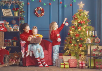 das Wohnzimmer wird in der Weihnachtszeit zum Mittelpunkt des Zusammenseins. Ein festlich geschmückter Weihnachtsbaum, der neben einem handgefertigten Holzschrank erstrahlt, bequeme Sitzmöbel und stilvolle Wohnaccessoires schaffen eine warme und einladende Atmosphäre für die schönsten Momente des Jahres.